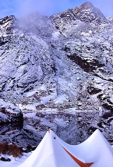 (un peu) sous le double toit du Vango. Il a neigé toute la nuit et,