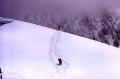 face raide de petites avalanches de poudreuse nous tombaient dessus en