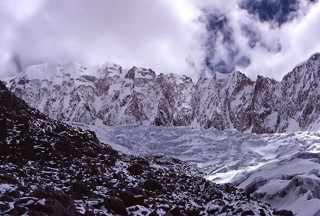 glacier en dessus de la face est de l’Ancohuma. Nous avons pris une