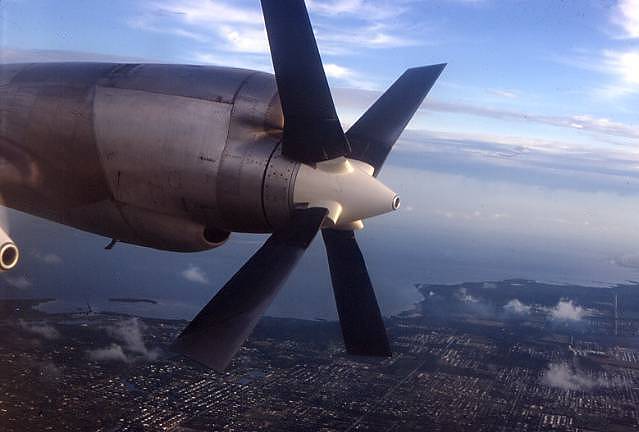 plein vol, en regardant par le hublot, j’ai constaté qu’une des hélices