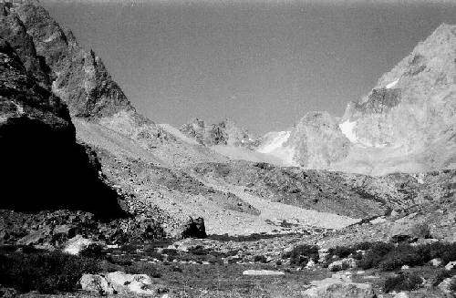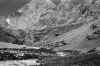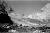 the glaciers and lower still, base camp valley with its meadow (a good