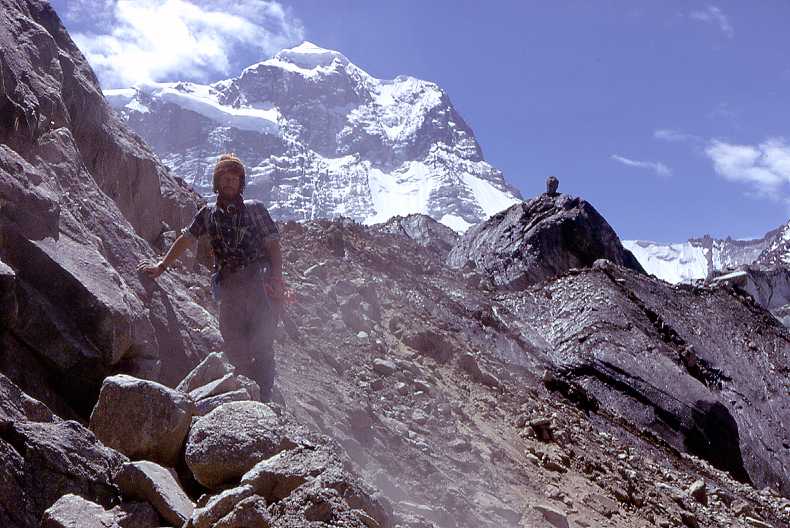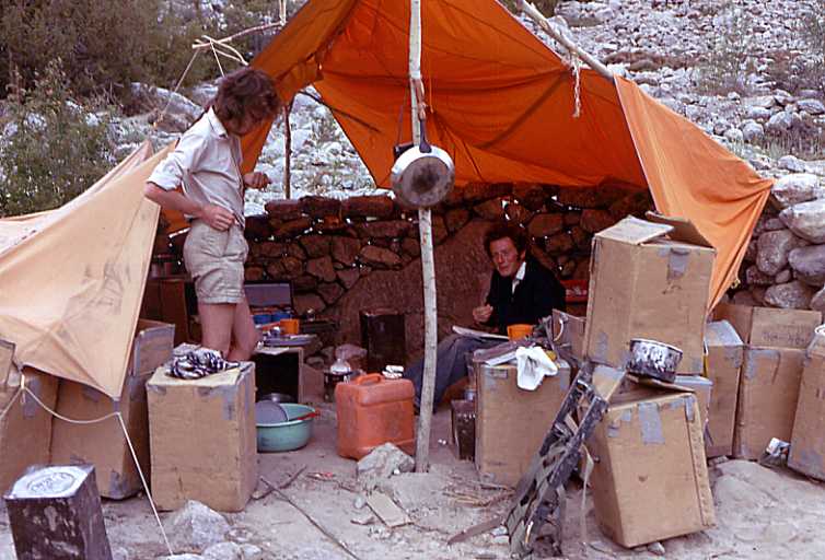 The rest of my account is taken practically word for word from a diary that I started writing at this point. I don't have a copy of the expedition report (Since writing this, Rob Wild contacted me, thanks to internet, and has sent me a scanned copy of the report. Click-here to see it), I lost touch with the most of the others as I remained in Paris after the trip. It looks at the expedition very much from a personal point of view. If any one reading this has a copy of the original expedition report, I would be very interested in seeing it and including a more balanced account. Harry and I climbed together for the whole period and spent little time in base camp for reasons which you will discover. It is sometimes a bit brutal concerning the others, for which I apologise, and also rather crude. I could have "edited" it, but after much thought I decided to leave it alone as it seems to me to show the true preoccupations on such a trip, the internal tensions which play such a part of living in small isolated groups and, above all, the importance of very basic human needs. I have added a some explicative notes in blue text, and a few asterisks to reduce the repetitions of words referring to the most basic of human functions but those that remain show how far the well turned anecdotes in the glossy coffee-table tomes that so often inform the public at large of the stirring adventures of mountaineering heroes are from reality! Napoleon said an army marches on its stomach; I would situate things a little lower down, but that was perhaps what he was trying to say too! I hope no one is too offended and please bear in mind it was written as a personal diary by a still rather naïve young man. It certainly reflects my true thoughts at the time better than the first part of this account, written from memory 29 years later. The problems described could easily have lead to failure and definitely prevented us from achieving all we could have done if we had been in better health - there are lessons to be learnt. I also found it amusing and revealing to read descriptions of some of the obnoxious sounding meals I happily quaffed, just hours after describing "symptoms" whose cause should have been obvious... Ah! The carefree energy of youth! Bruce’s