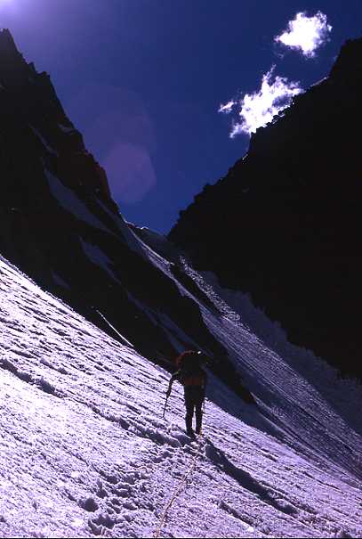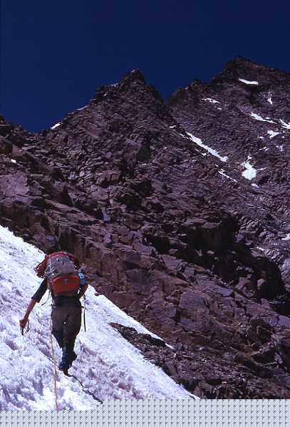 moving roped, sometimes together, sometimes unroped. The lower part all