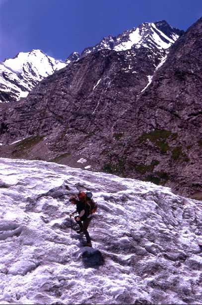 off with three days food. Crossed Pecchus glacier near snout instead of