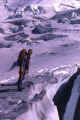 up right bank grass and scree, then on glacier. Got into badly crevassed