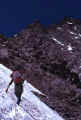 climbed up behind, hoping to cross the ridge and traverse to the gully