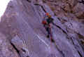 easy scrambling on good granite. Down to the initial pitch. Abseiled 30