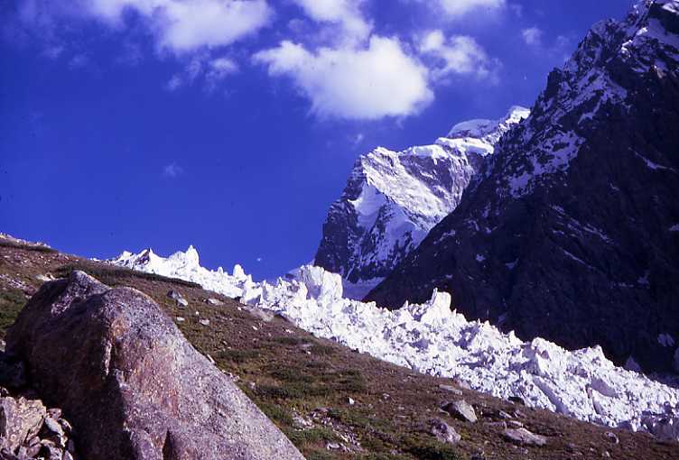 We were now all looking for a way up the Pecchus glacier. This is what we had come for! |
