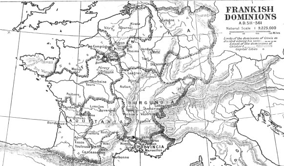 Gregory was Bishop of Tours, at the time at the edge of Frankish influence in what had been Gaulle (see map) but had not yet become France. It covers a particularly interesting, chaotic and colourful (mostly red) period of European History.